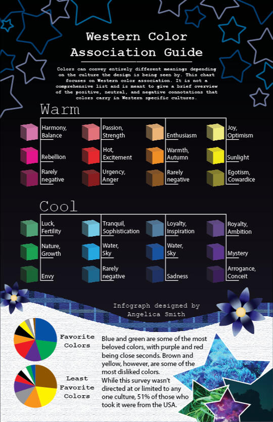 An infograph demonstrating the positive, neutral, and negative associations certain colors have in western culture.