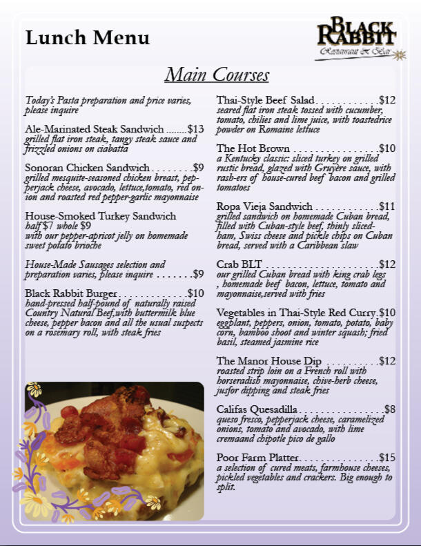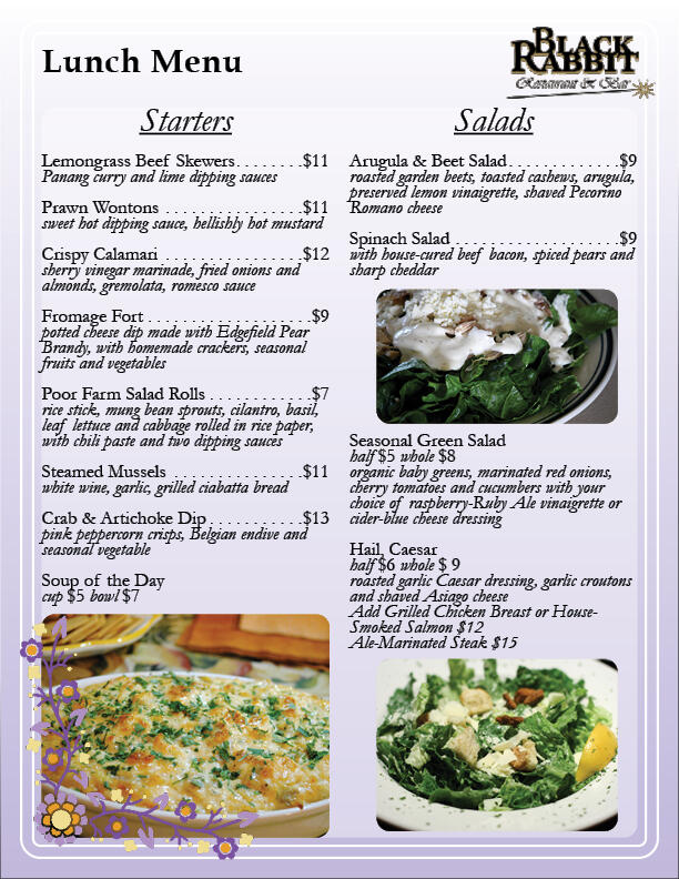 A mock lunch menu, including images.