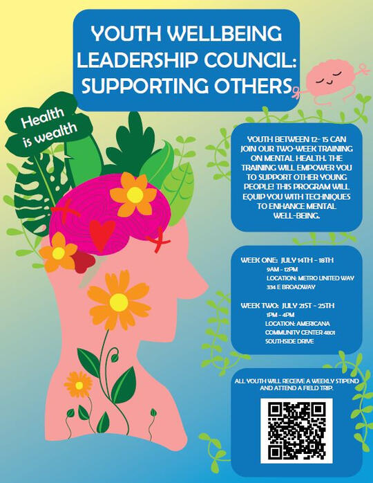 A flyer with a mix of imagery and information about the program, including a QR code.